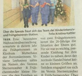 Ich hatte ja die Weihnachtsaktion im CTK Cottbus noch nicht gepostet,da die Schwestern eventuell Bilder der Übergabe schicken wollten. Es war aber Weihnachten voll belegt und so viel los, dass sie es nicht schaffen konnten. Die Schwestern, die bei der […]