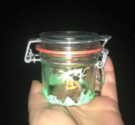 Voller Eifer bemalte mein Sohn dieses Glas. In diesem Glas sollen nun all seine Wünsche wohnen. Er flüsterte hinein: Irgendwann möchte ich den Mond besuchen. M.