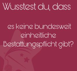 Wusstest du, dass es keine einheitliche Bestattungspflicht für Sternenkinder gibt?Lebendgeborene Sternenkinder und Sternenkinder ab 500g Gewicht müssen in Deutschland bestattet werden. Die Angebote und Möglichkeiten variieren von Bundesland zu Bundesland. Sternenkinder unter 500g Gewicht und ohne Lebenszeichen gelten als Fehlgeburten […]