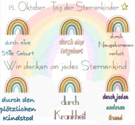 Heute ist der Tag der Sternenkinder. Wir möchten an diesem Tag jedem Sternenkind gedenken, egal wann es zu den Sternen reisen musste. Lasst uns weiter gegen dieses Tabuthema vorgehen. Macht mit und lasst uns gemeinsam dieses Tabu brechen.