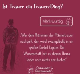Warum werden Männer in ihrer Trauer so selten gesehen? Weil sie immer als Krieger, Macher, Ernährer, die Starken wahrgenommen werden?