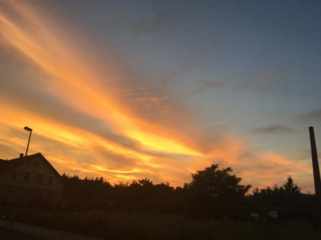 Neulich war er wieder wach und fing an, laut zu weinen. Mein Mann war schon ziemlich genervt von dem Geheule und ich hab mir den Kleinen geschnappt und bin mit ihm auf dem Arm in den Garten geflüchtet auf die Gartenbank. Die Sonne ging so langsam unter und die Grillen fingen an zu zirpen. Der Wind strich sanft um uns herum. Es war angenehm warm, wir brauchten keine Decke oder Jacke.