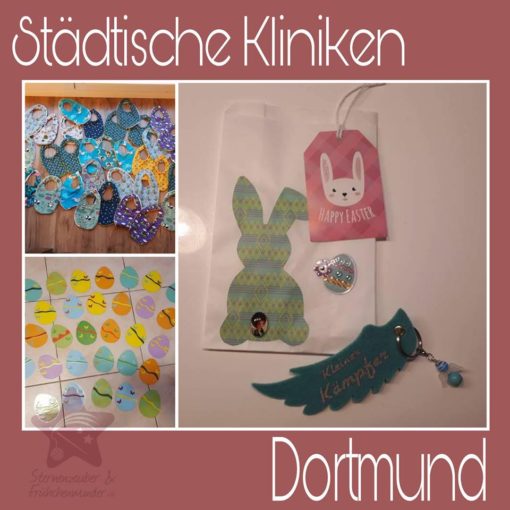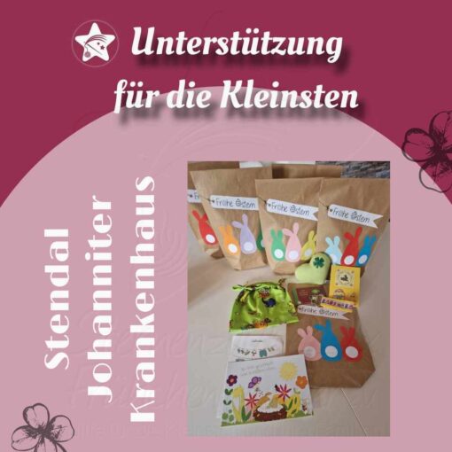 Mit Schwester Julia habe ich mich wie immer auf dem Parkplatz vom Florapark getroffen. Zusammen mit den Ostersets reisen auch 2 Sternchensets und ein paar Hauke Hase mit in die Uniklinik, so dass wieder alles aufgefüllt ist.