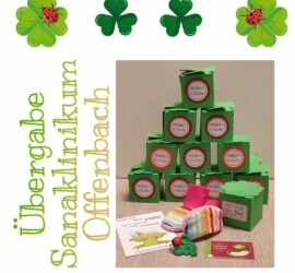 Dank der tollen Hilfe von Michaela Bruns (Boxen basteln & Kleeblätter) feiert das Sana Klinikum Offenbach mit uns den Weltfrühchentag.Per Postweg machen sich morgen die Geschenke und noch ein paar genähte Kleidungsstücke auf den Weg. Jana Herget November 2021