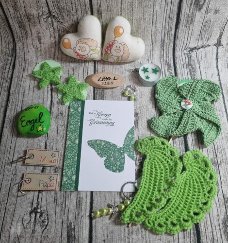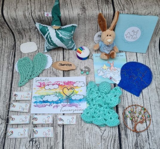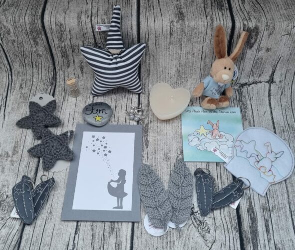 Gerne stellen wir dir eine Erinnerungsbox zusammen. Melde dich dafür bitte per Mail unter info@sternenzauber-fruehchenwunder.de. Die Mädels besprechen mit dir alle wichtigen Eckdaten für deine SZP.